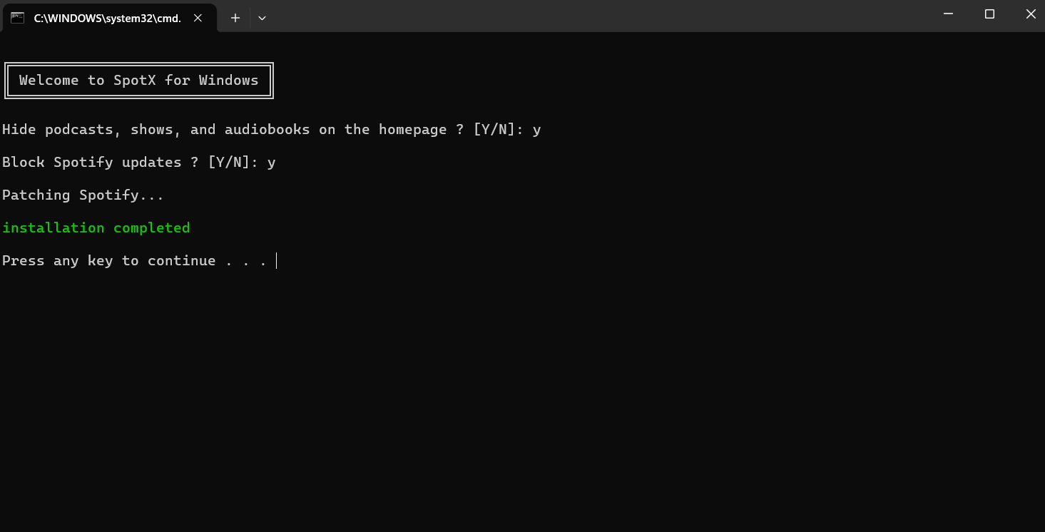 Install_Auto.bat→ Run as administrator. - It’ll patch Spotify automatically. Just let it do its thing.