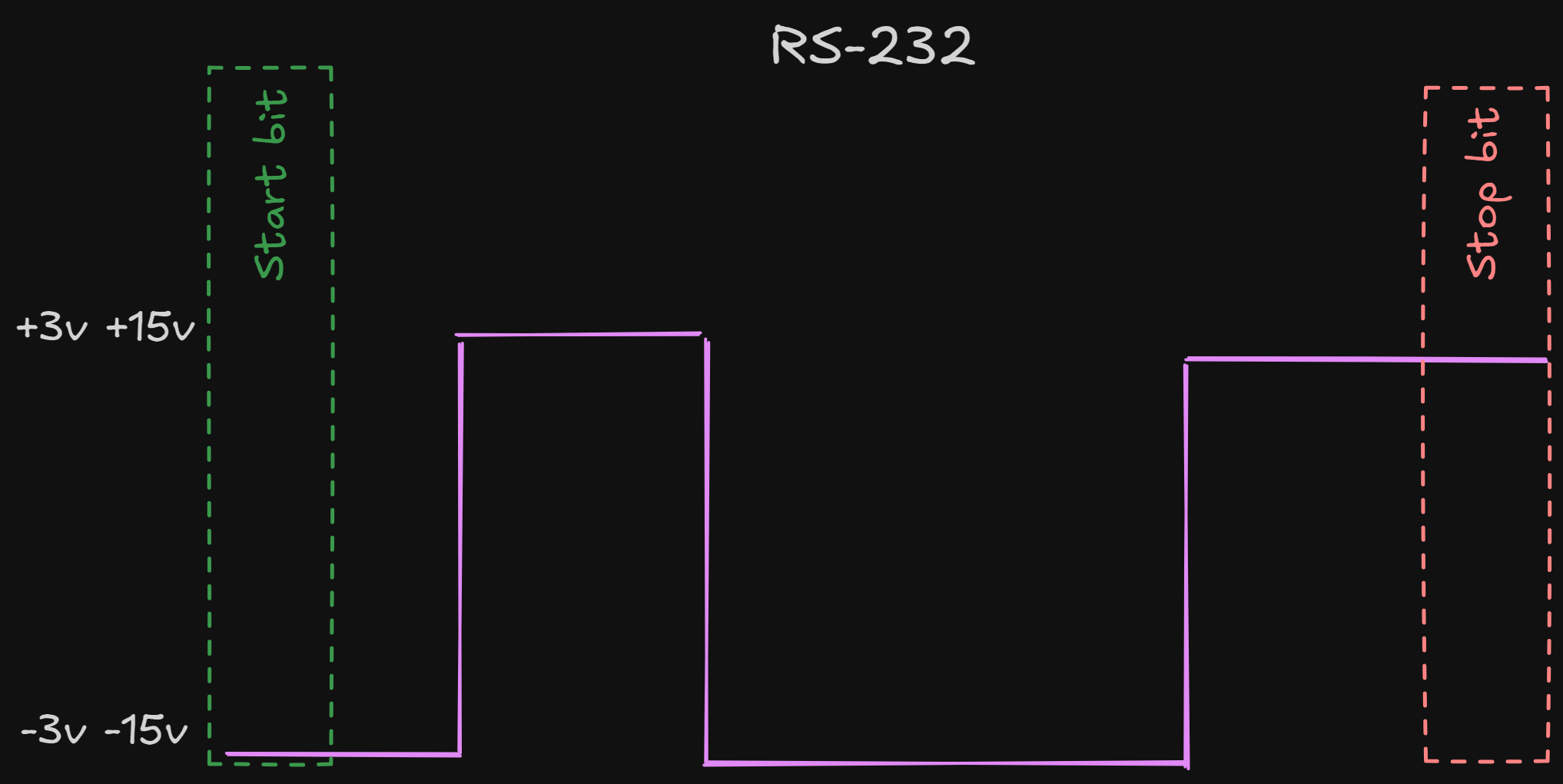 - +3V to +15V represents a "0" bit.